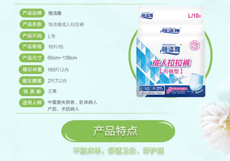 恒洁雅 成人拉拉裤 (60-139cm) 10片*1包