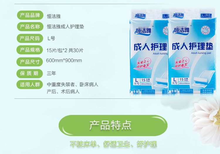 恒洁雅 成人护理垫 L30片 (600*900mm) 15片*2包
