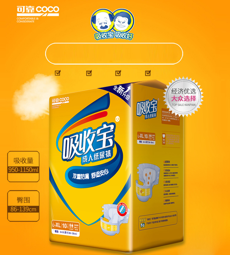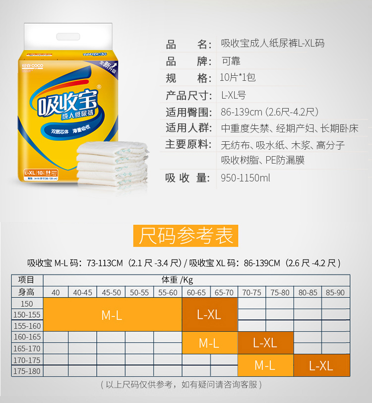 可靠成人纸尿裤L-XL号10片装【86-139cm】