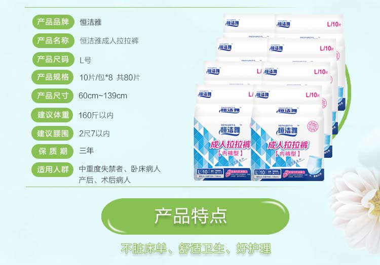 恒洁雅 成人拉拉裤 (60-139cm) 10片*8包
