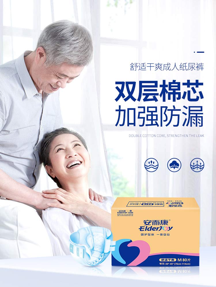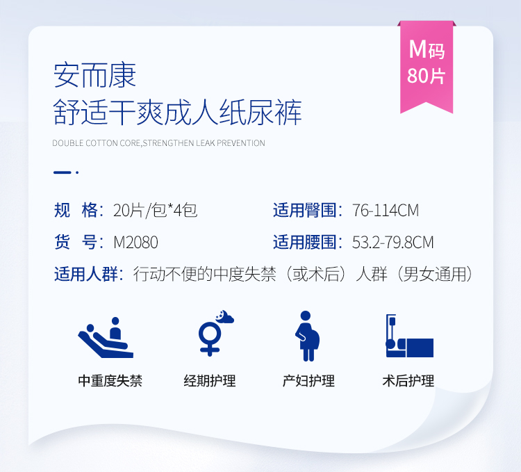 安而康 舒适干爽成人纸尿裤 M80片(76cm-114cm)