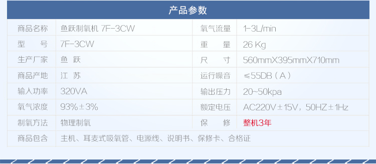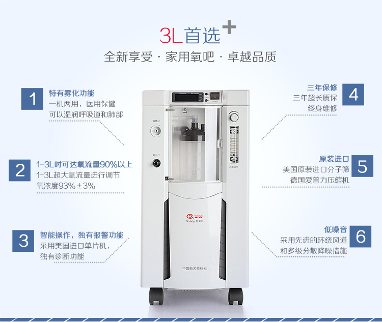 鱼跃家用制氧机 7F-3CW带雾化吸氧机3升级版氧气机