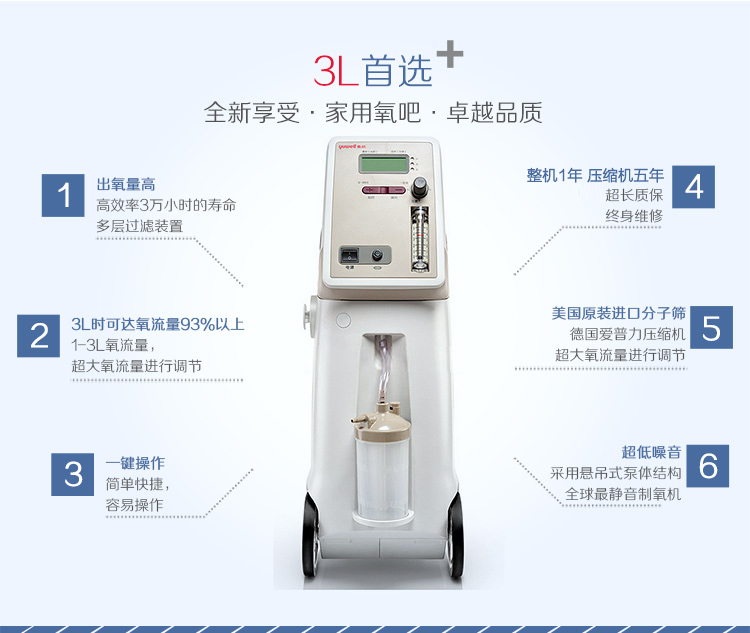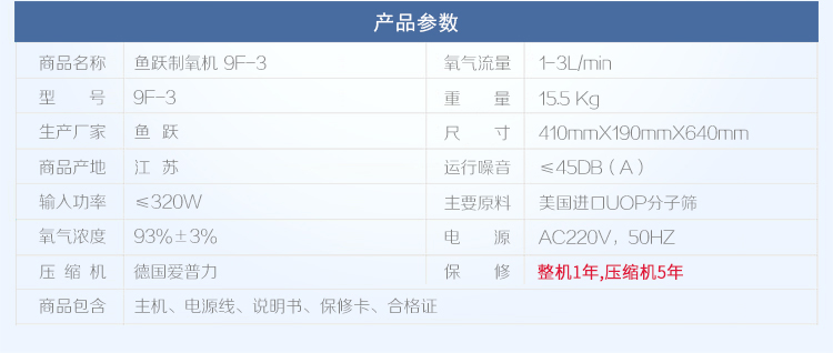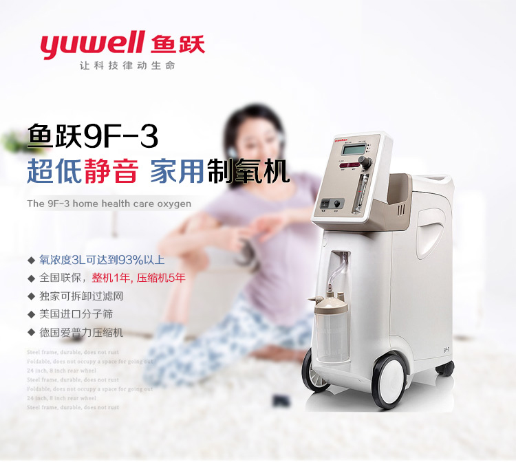 鱼跃(Yuwell) 鱼跃制氧机9F-3 旗舰版 吸氧机 氧气机 更轻 更静音 性价比高 医用级3L