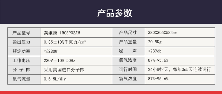 英维康制氧机IRC 5PO2AW(非V型、非国产压缩机)