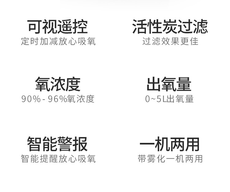 欧盟CE专业认证 屏显遥控 操作简单 轻巧便携 智能报警 制氧雾化两用