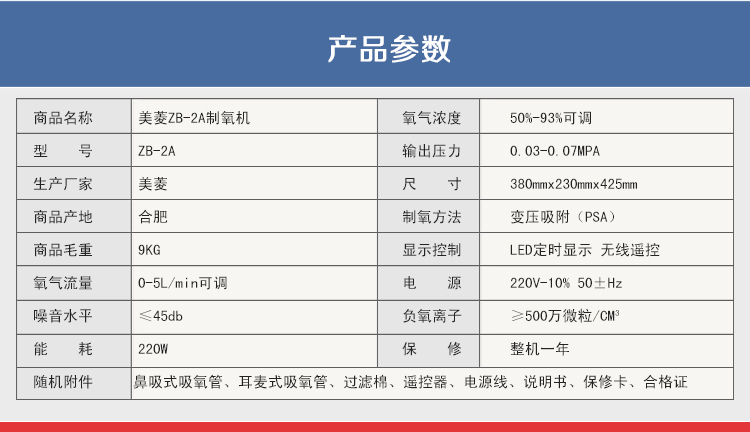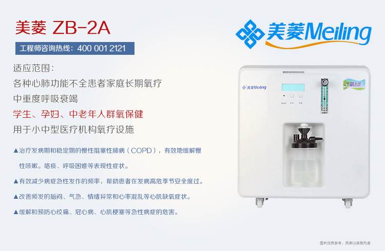 美菱ZB-2A家用制氧机老人吸氧机氧气机 便携式氧气机