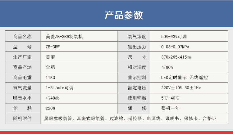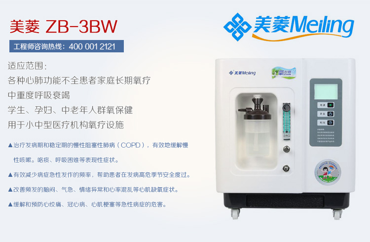 美菱制氧机ZB-3BW 3L家用制氧机雾化型