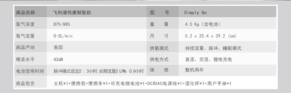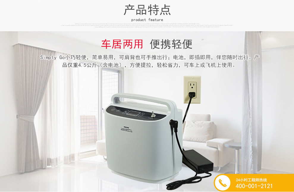飞利浦制氧机Simply GO便携式氧气机 车居两用家用医用吸氧机