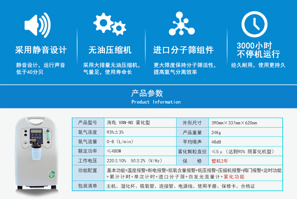 海龟医用家用制氧机吸氧机 V8N-NS标准型