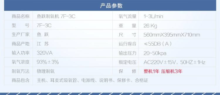 鱼跃制氧机 鱼跃7F-3C家用制氧机