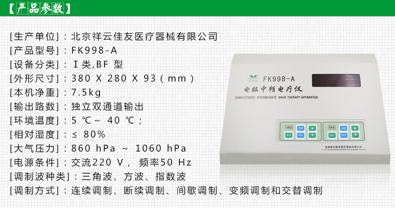 FK998-A型电脑中频电疗仪是用于物理治疗的一种医疗设备。
