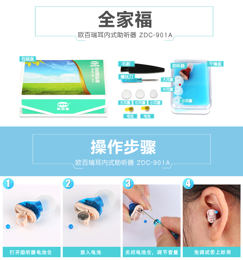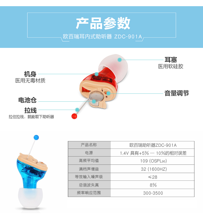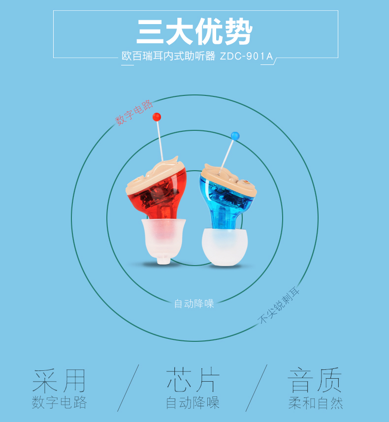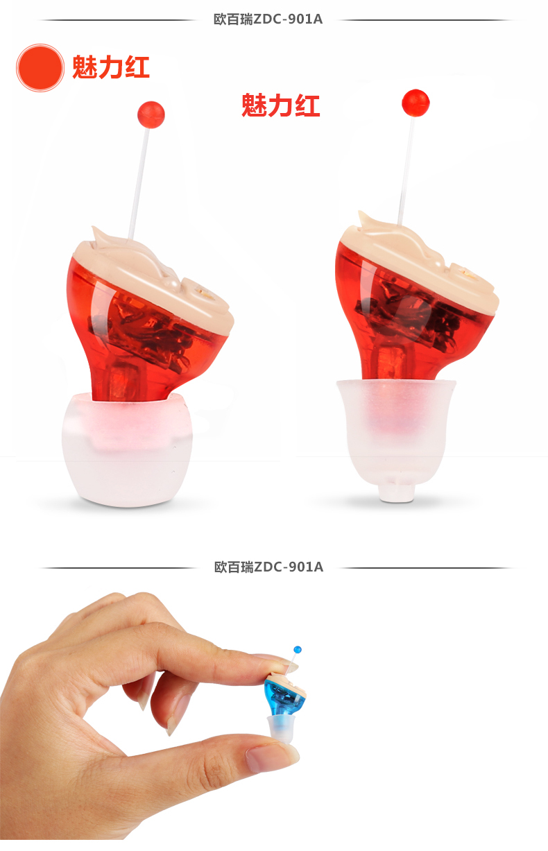 欧百瑞(OPARI)助听器 老人隐形耳内式无线助听器耳聋耳背耳道式老年助听器耳机 右耳红色