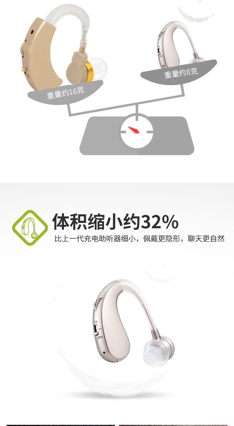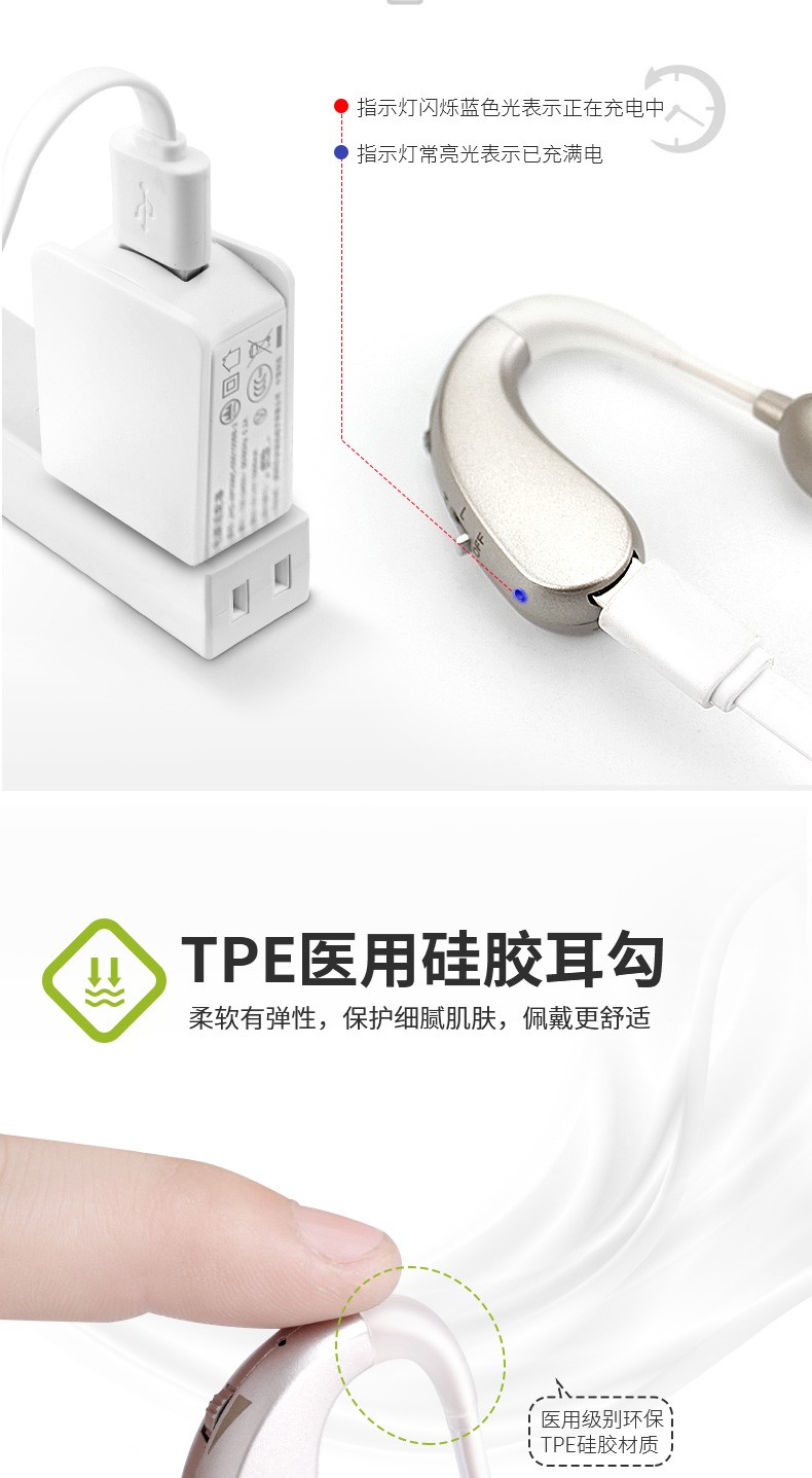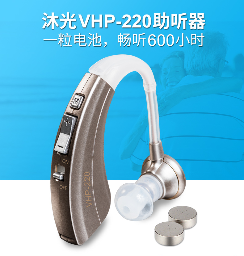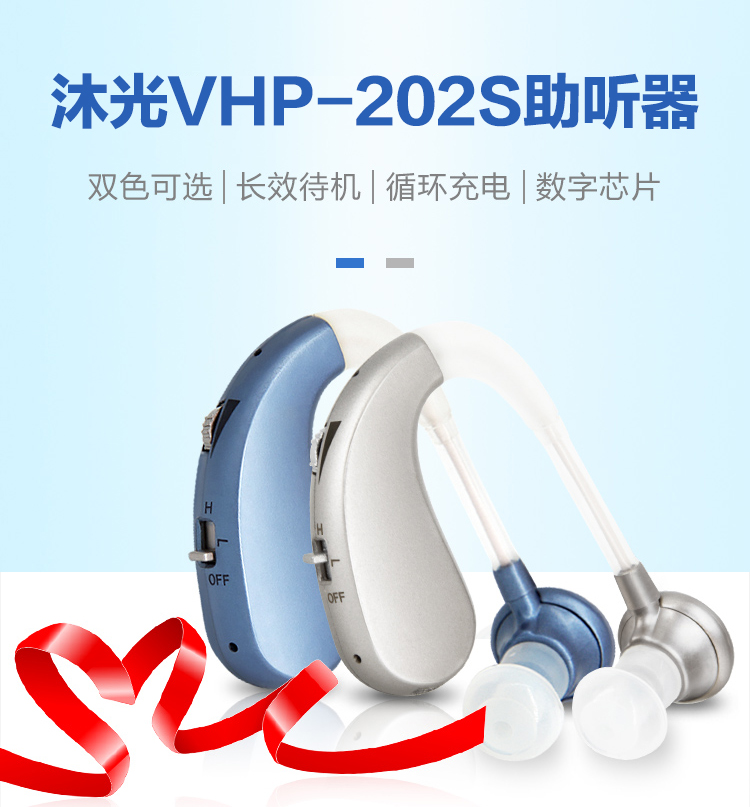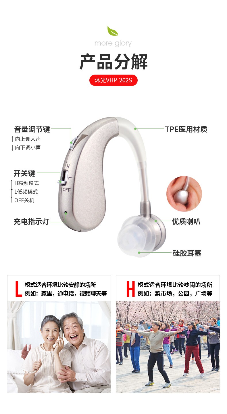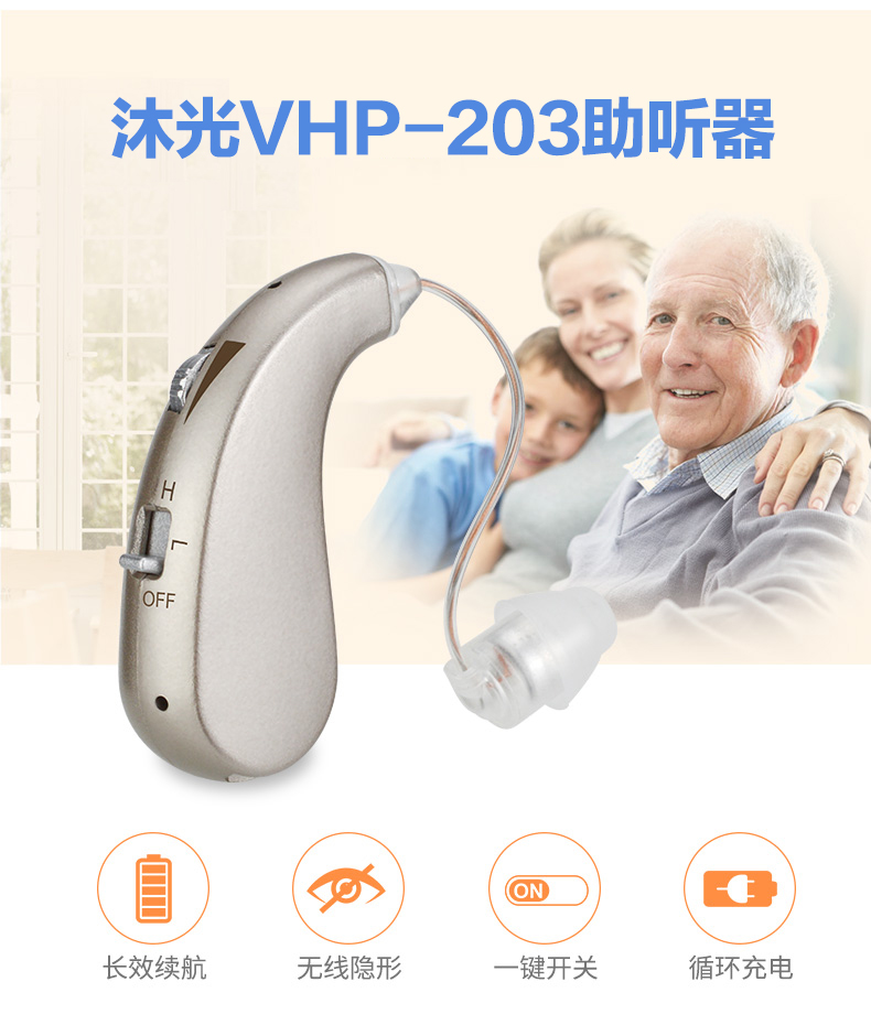 沐光 助听器(耳背式)无线隐形可充电 耳机USB免调试 VHP-202s 钛金银(赠原装充电器)