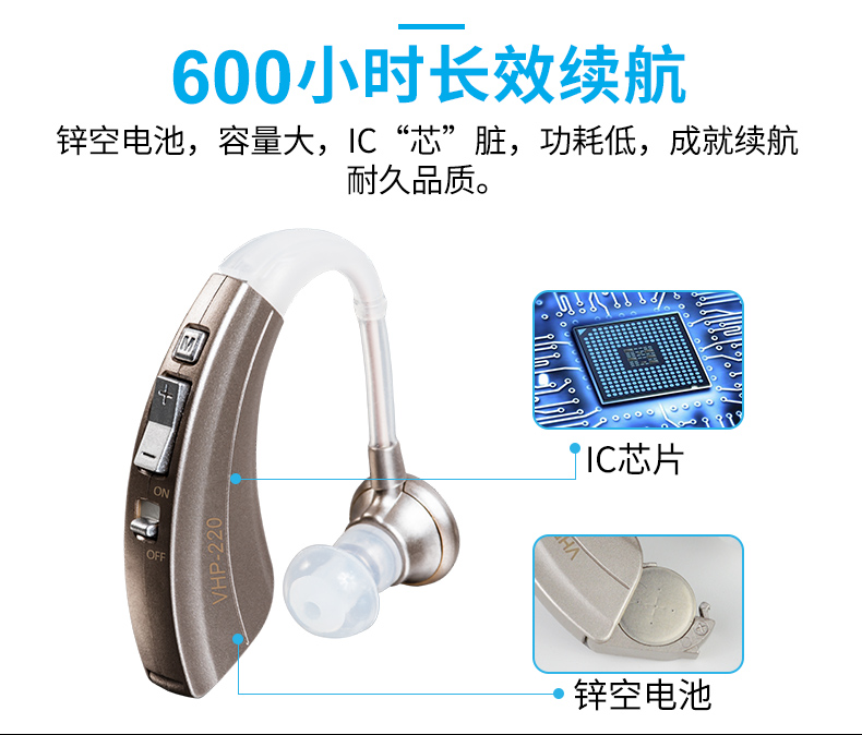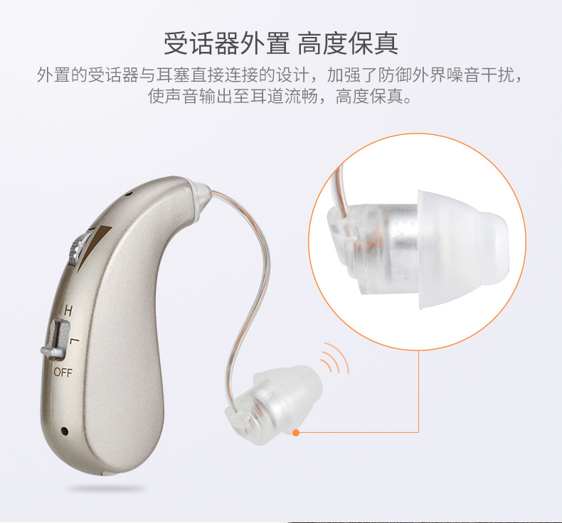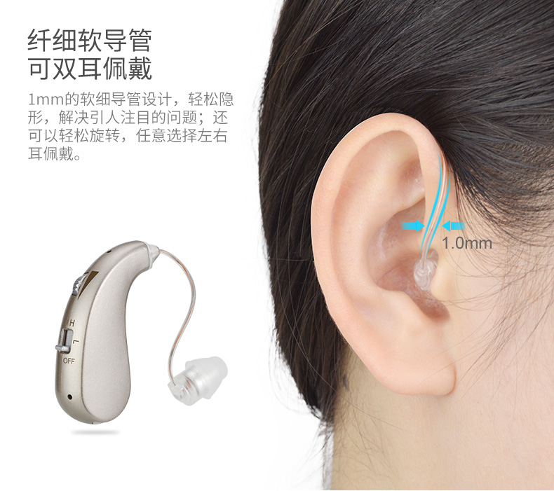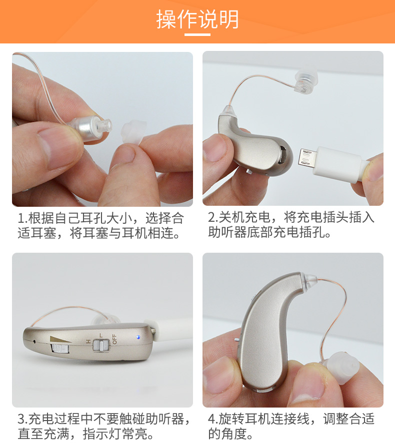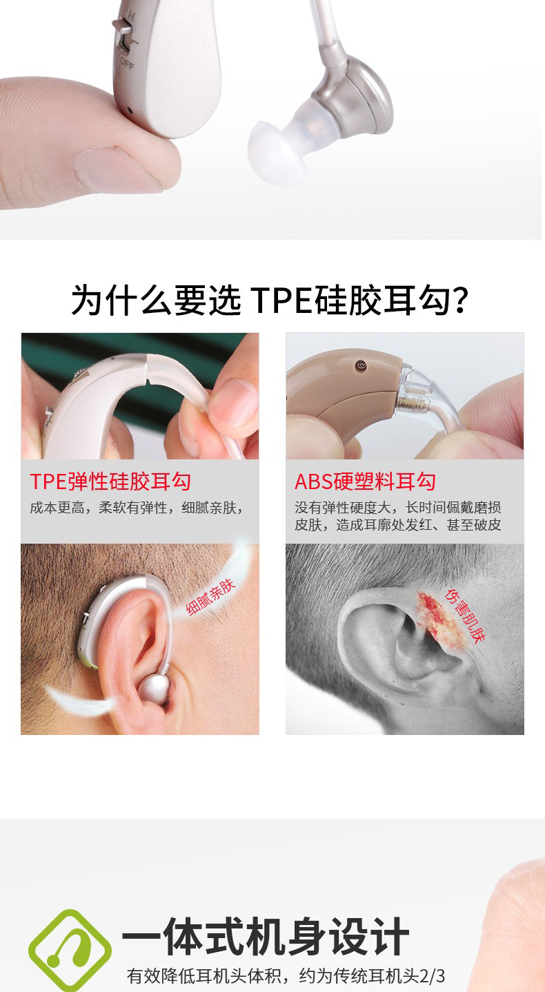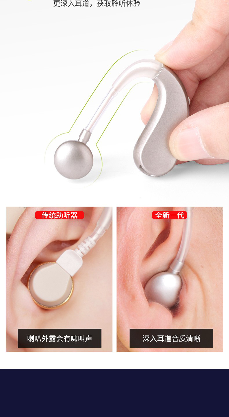 沐光 助听器(耳背式)无线隐形可充电 耳机USB免调试 VHP-202s 钛金银(赠原装充电器)