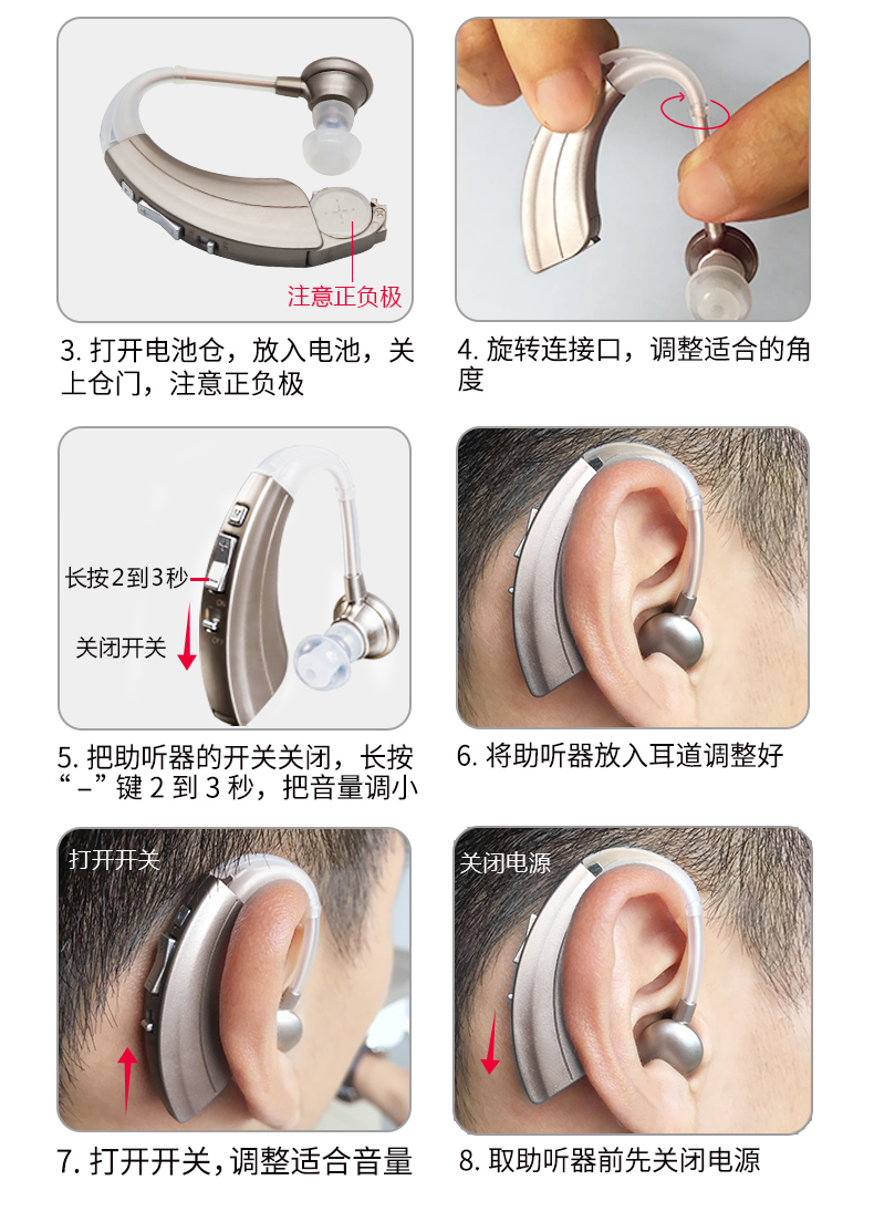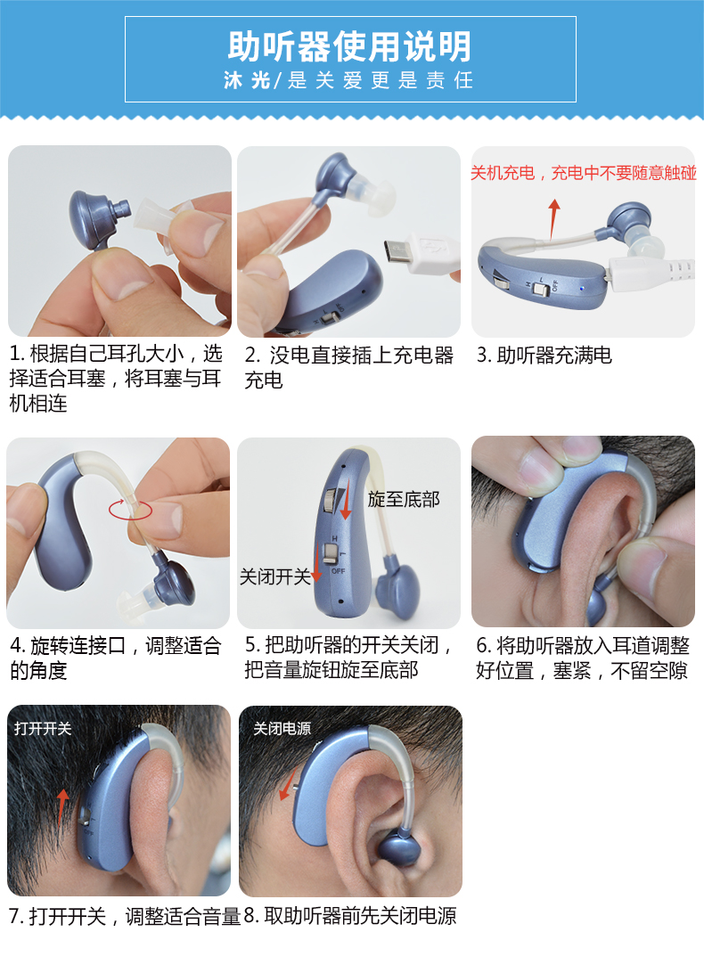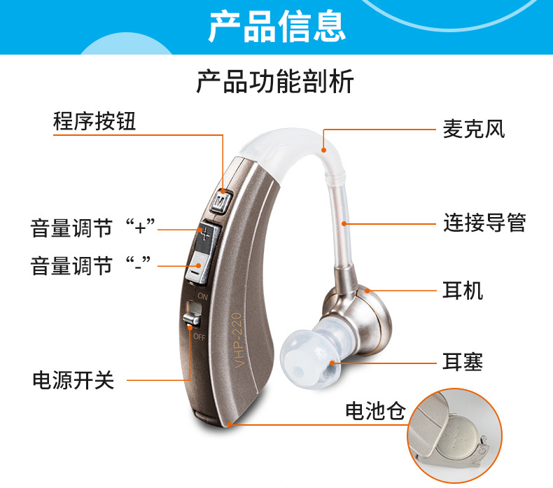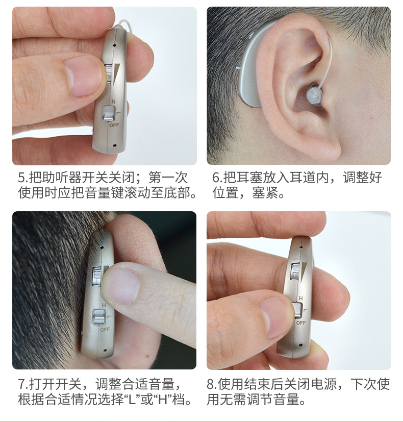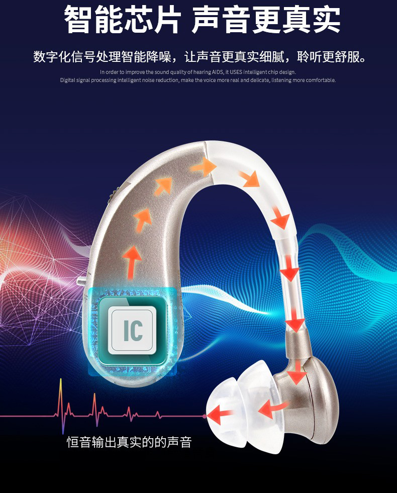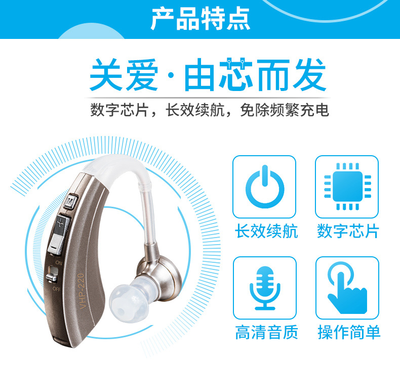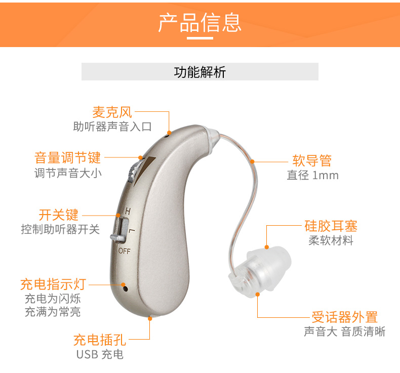 沐光 助听器(耳背式)无线隐形可充电 耳机USB免调试 VHP-202s 钛金银(赠原装充电器)