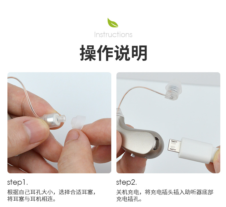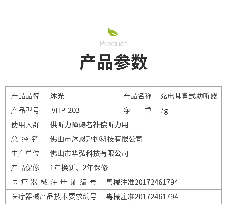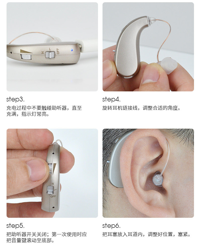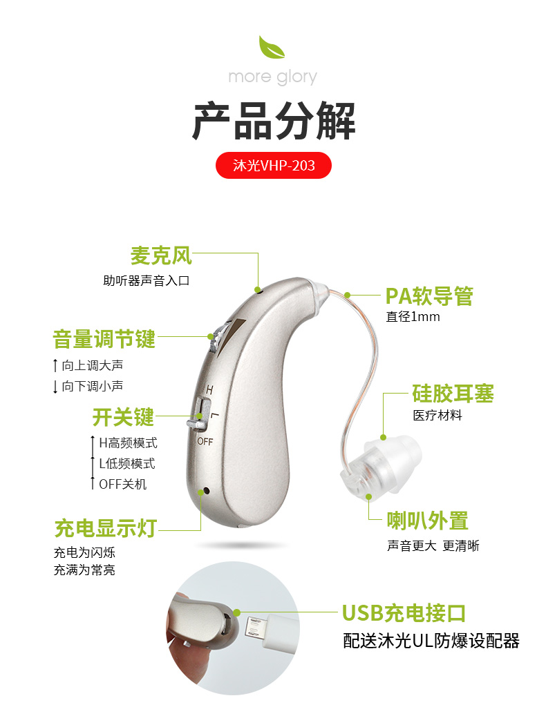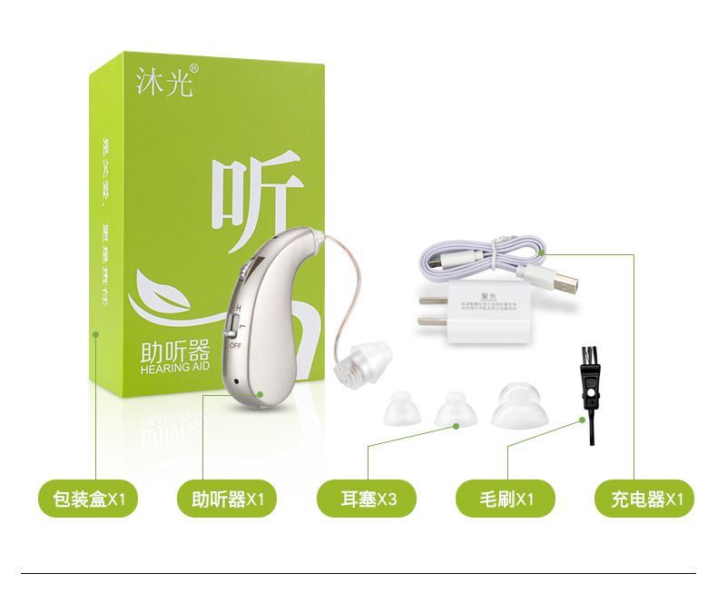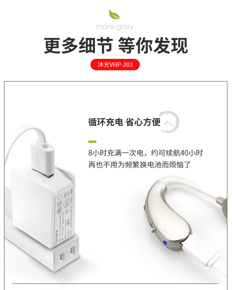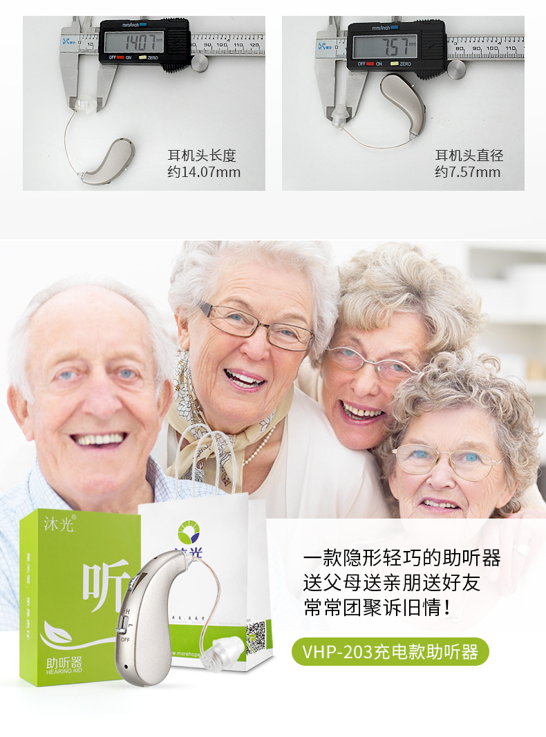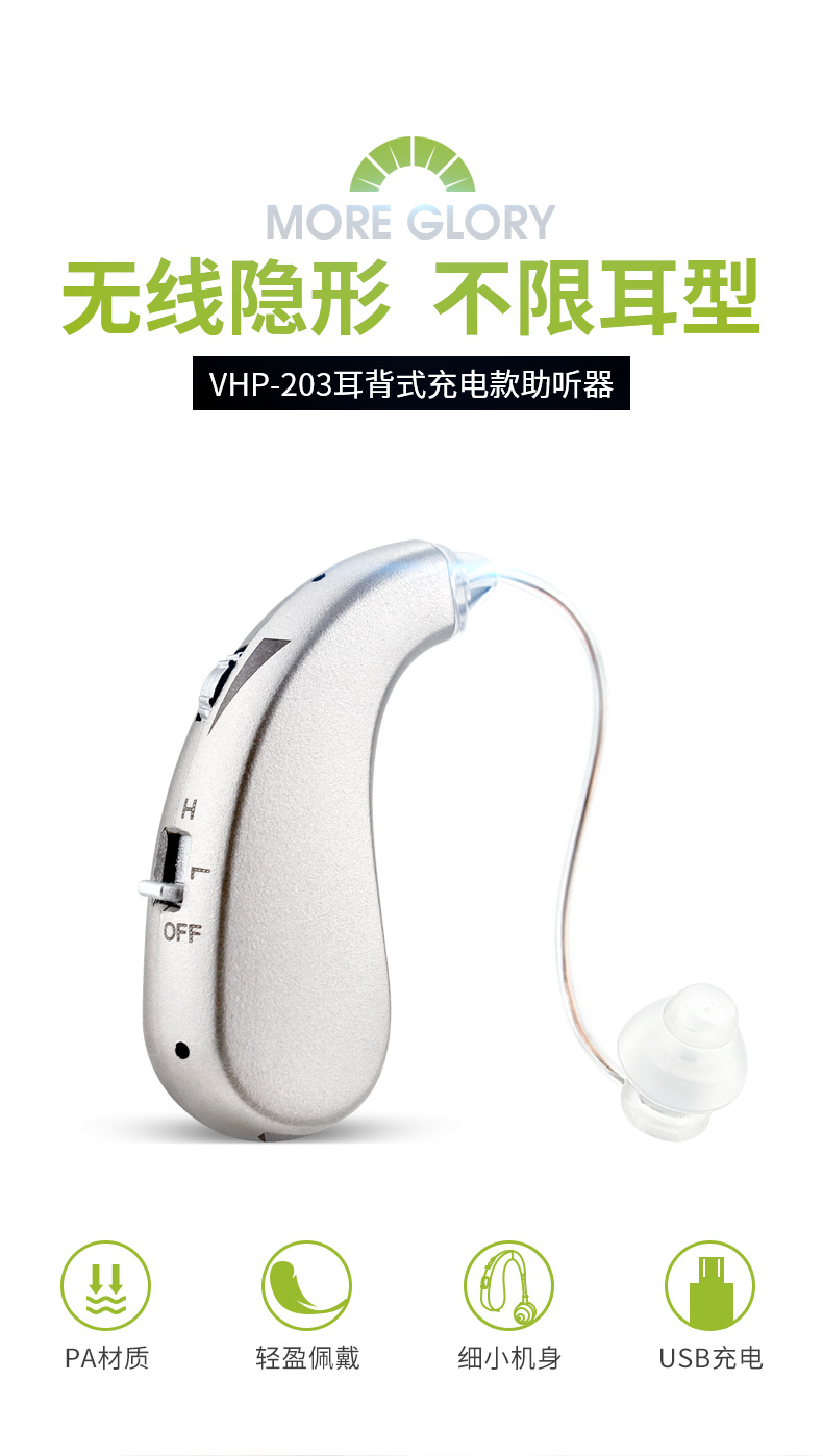 沐光 助听器(耳背式)可充电无线隐形 VHP-203 钛金银(赠原装充电器)