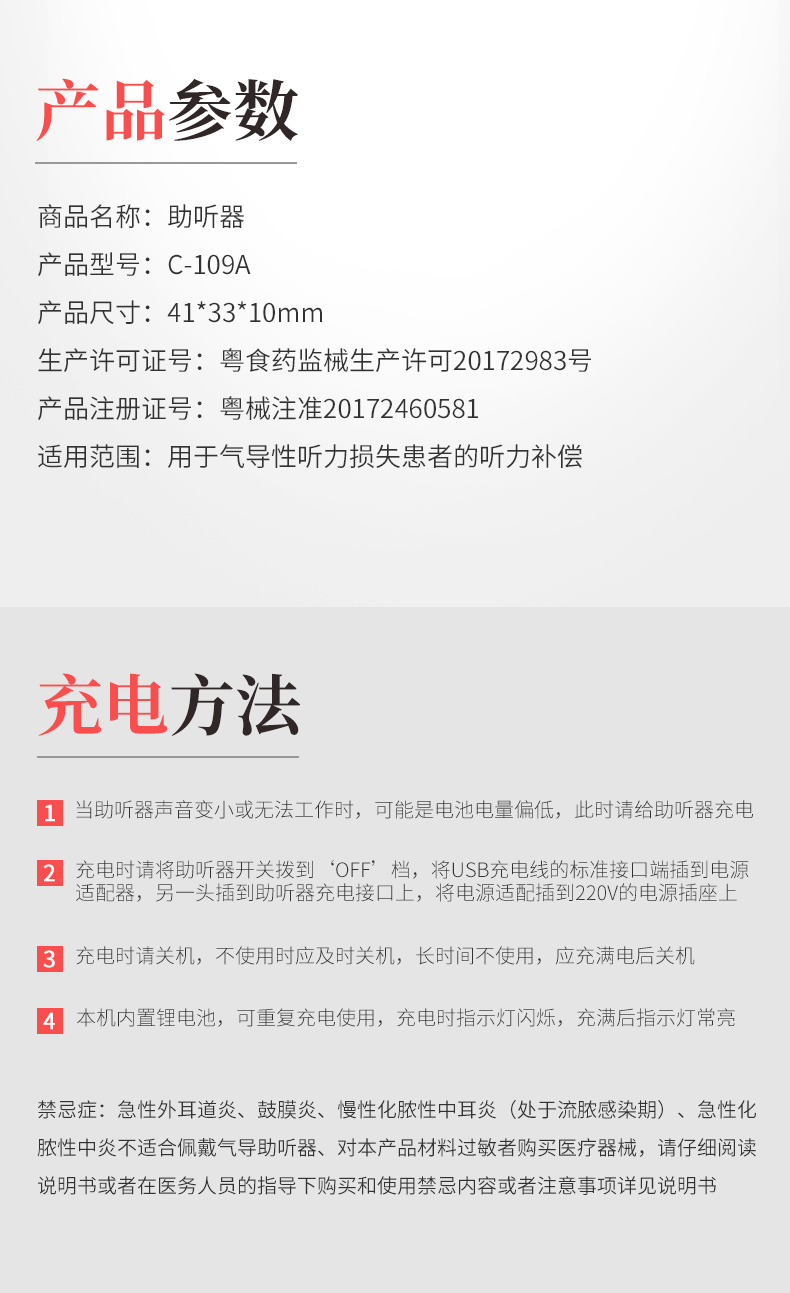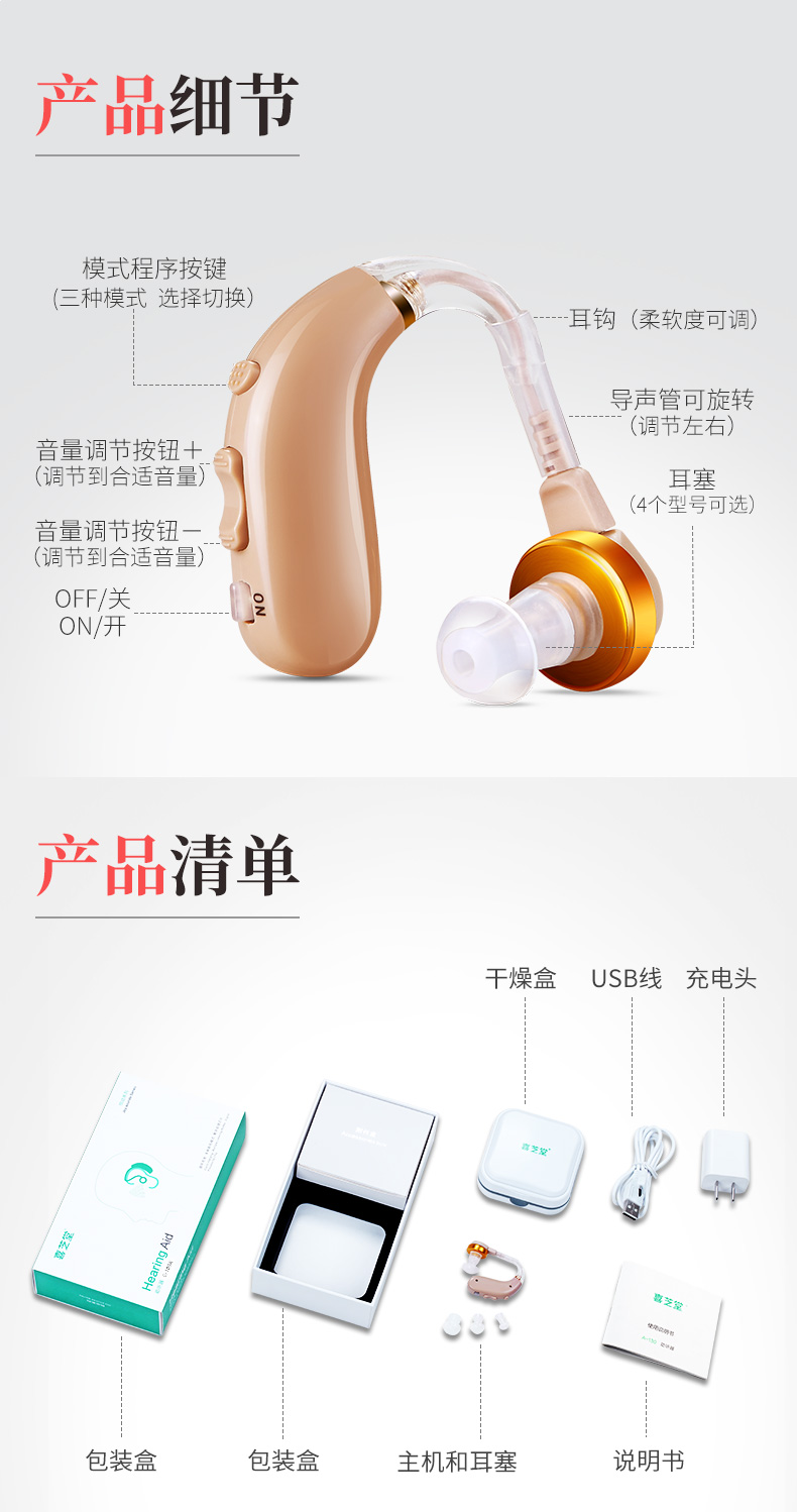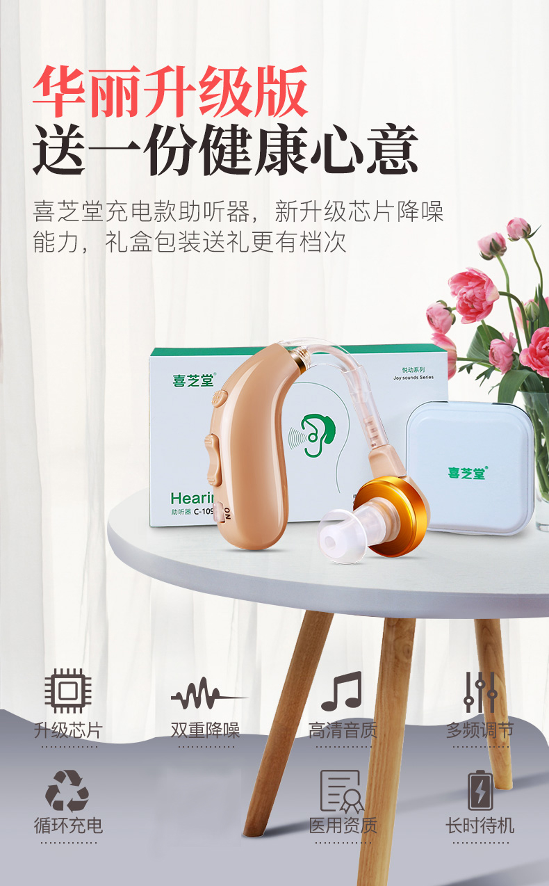 喜芝堂 助听器(耳背式)C-109A 可充电无线隐形USB免调试 不分左右耳【单耳】
