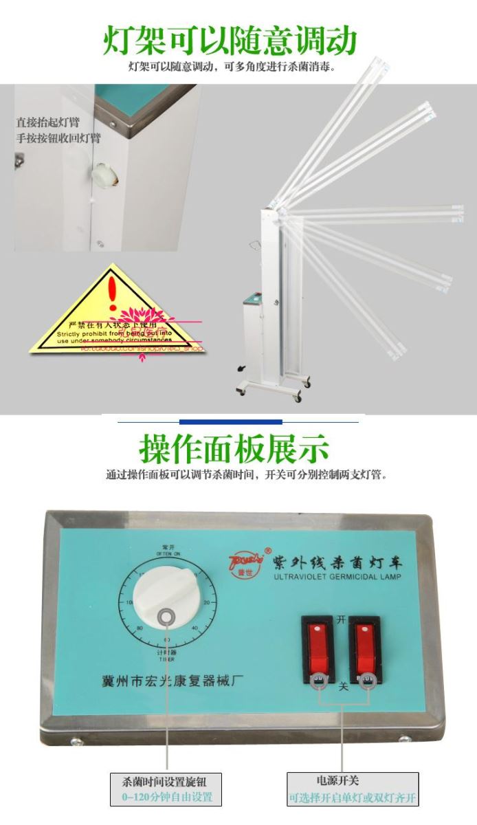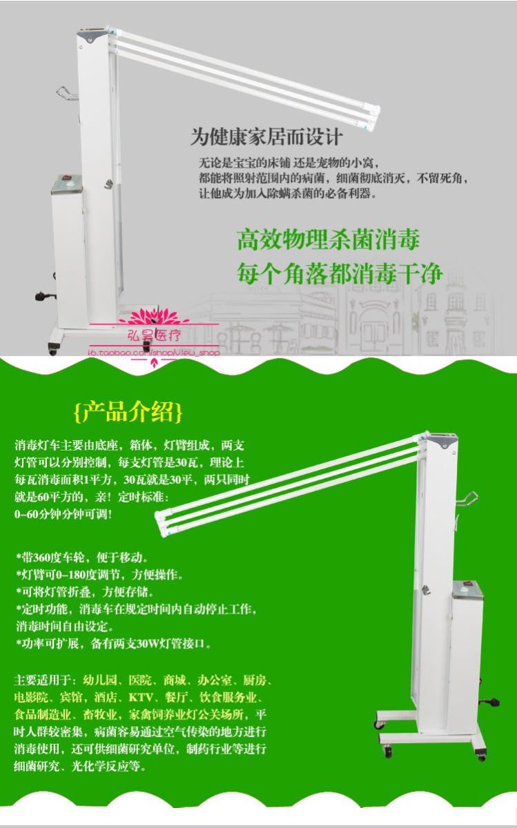 普世 医用双管紫外线杀菌消毒灯移动式紫外线消毒车幼儿园紫外线消毒灯51-60W