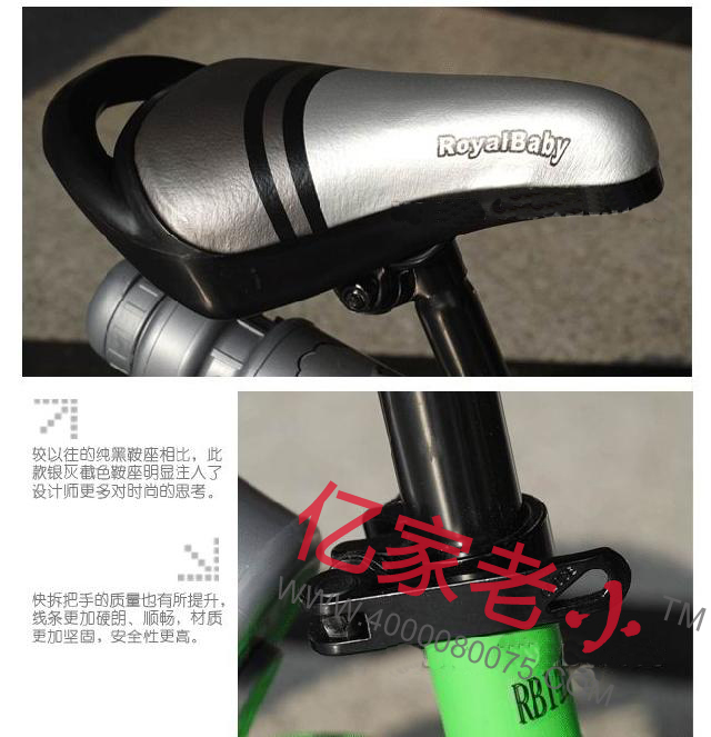 8.专为宝宝小手设计的高档刹把,握距可以调节,配合钳形刹器还有刹线微调, 后刹车采用抱刹,刹车更加灵敏增加宝宝骑行时;