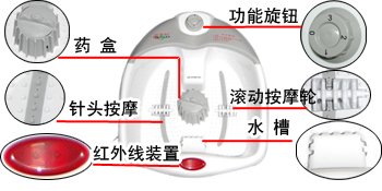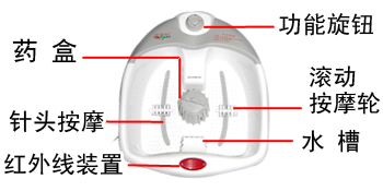 3、 此脚部按摩器是根据脚的穴位分布和骨骼的结构而设计,适合各种脚型。其功能选择开关可选择不同的按摩功能。按摩粒能有效地按摩脚底各个部位;热水循环按摩脚部,使脚部可享受热水浴;药槽按摩,将中草药散发出来起到舒筋活络,提神的作用;红外线按摩,促进血液循环。如想增强按摩强度,使用者改变脚底压力便可。