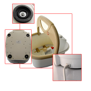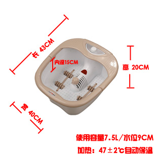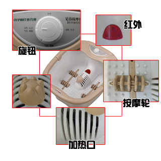 特色功能 430功率:减少加热时间,即刻享受舒适的美妙生活。自动恒温加热。 独特的水电分离:技术更有效。 深水位设计:脚足同泡,泡得更舒服。 产品采用PTC加热,双重热保护,自动恒温。 产 品具有气泡增氧(脚底气泡槽放出大量气泡,气泡在破裂的瞬间刺激足底穴位促进血液循环疏通经络以达到深层保健的作用)、臭氧杀菌(足浴器按摩可产生臭氧气 泡,溶解于水中,用含有活氧水泡脚,可杀除脚上的各种细菌,您的脚自然就不会生脚气了。还可以防止交叉感染,另外在气泡增氧的情况下才能开启臭氧杀菌)、 高频磁石(通过磁体形成的磁场作用于足部相应的穴位,产生磁场生物效应,在磁场的作用下,能够改善血液循环,增强机体的抵抗力,增加新陈代谢,消除疲劳, 达到修身养性的保健目的。)和红光(红外线可以深入人体3毫米以促进血液循环、缓和肌肉紧张、促进新陈代谢。)等多种功能。 手动旋钮操作,一目了然,快捷方便特别适合中老年人使用。 产品底部设有穴位滚动按摩轮,可刺激脚部各个穴位。 创意提手设计轻便简洁美观 。 |
