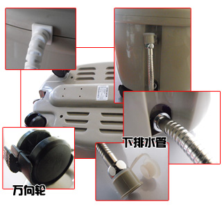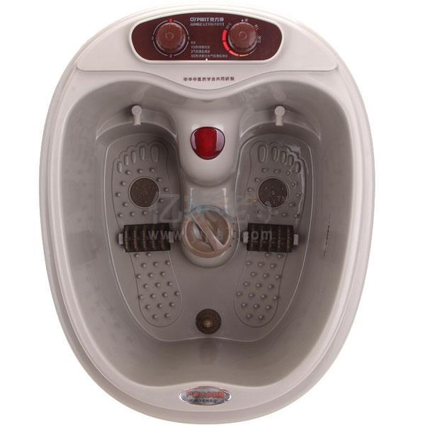 产品还具有振动按摩(装有高频转动电机、开启后高频振动,不断刺激脚部微循环系统,对脚底穴位进行共振按摩,促进血液循环,以达到深层保健的功效)、气泡增氧(脚底气泡槽放出大量气泡,气泡在破裂的瞬间刺激足底穴位促进血液循环疏通经络以达到深层保健的作用)、臭氧杀菌(足浴器按摩可产生臭氧气泡,溶解于水中,用含有活氧水泡脚,可杀除脚上的各种细菌,您的脚自然就不会生脚气了。还可以防止交叉感染,另外在气泡增氧的情况下才能开启臭氧杀菌)、红光(红外线可以深入人体3毫米以促进血液循环、缓解肌肉疲劳、促进新陈代谢、)、静音面盖、移动脚轮(可在浴室或洗手间装满水后推出来,避免装水后过重搬到房间等也方便老人家及不能提重物者。)和下排水(只要将排水管的小盖子打开即可排水)等功能