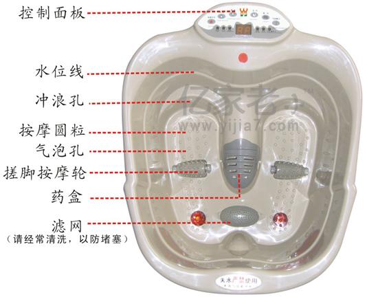 1.智能控制 2.加热功能 3.35-47度调温、恒温 4.振动按摩 5.磁疗保健 6.循环冲浪 7.足底搓脚按摩 8.气泡、臭氧 9.10分钟-60分钟定时 10.下排水、移动脚轮 ;