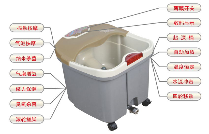 通过按摩足浴器中间的按摩轮或按摩球对足底局部穴位进行重点按摩。