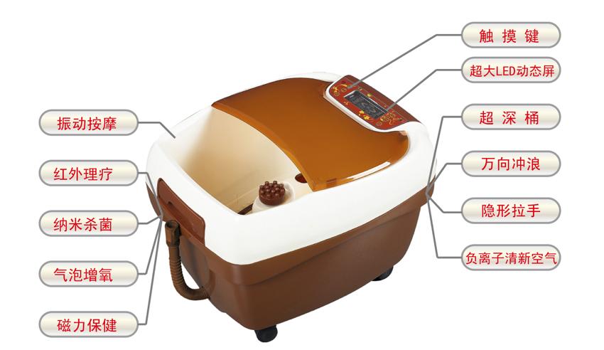 通过按摩足浴器中间的按摩轮或按摩球对足底局部穴位进行重点按摩。