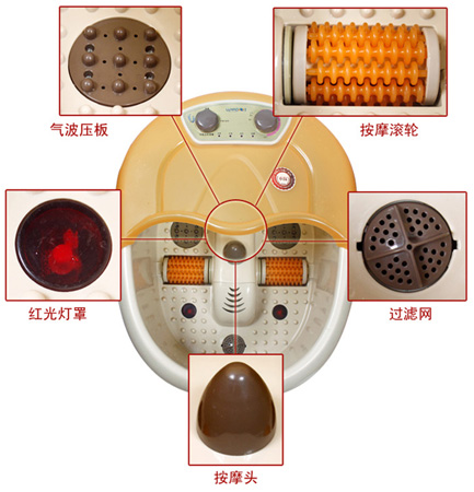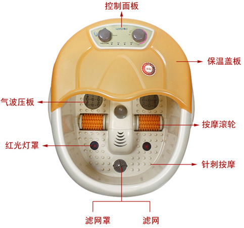 7、 只能放水、洗脚液,防止滤网堵塞;固体药物应用纱布包裹,并放入药盒内