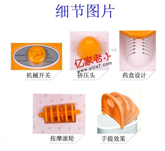 1.提篮式设计;2.PTC加热,自动恒温37-50(±3度,高效传热, 加热,快速升温,芯片控制,温度准确;3.提篮设计,省力省心;4.气波增氧,双泵设计,气波均衡;5.多种按摩,享受随心;6.臭氧杀菌; 7、采用PTC加热,具有三重绝缘、水电分离 。