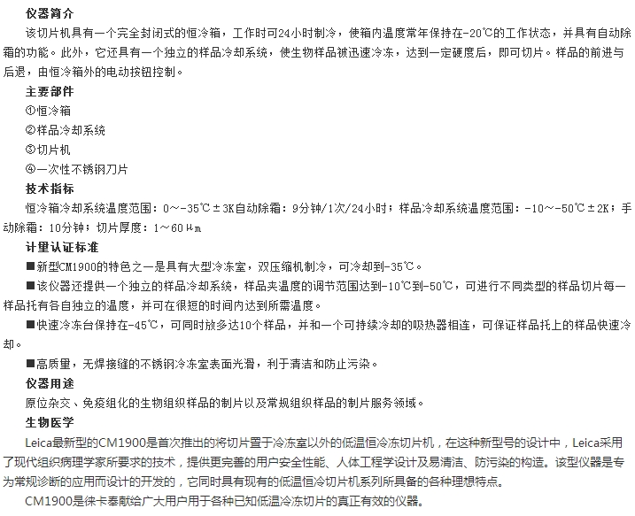 德国徕卡CM 1900双压缩机制冷型冷冻切片机
